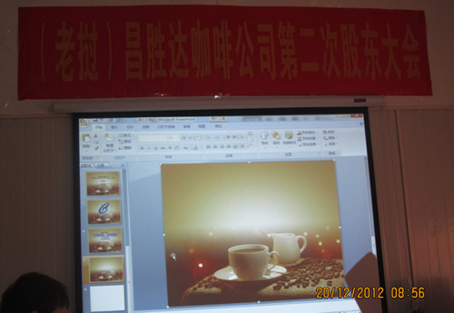 经过一天的休整,昌胜达咖啡公司第二届股东会议于2012年12月20日正式召开。上午9点正,公司股东、老挝公司部分员工、老挝籍技术员等准时在公司综合培训室集合落座。随着公司总经理吴建新先生宣布“会议开始”,公司董事长尹新华先生开始做会议发言。