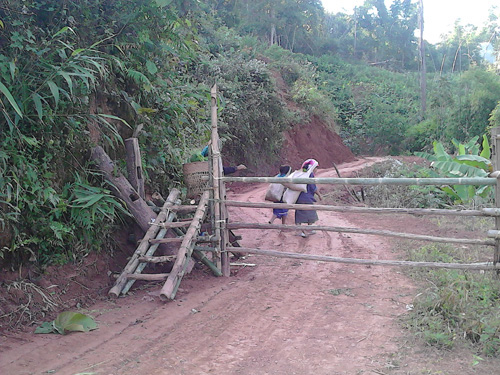 这条路是昌胜达咖啡公司为种植咖啡的村庄免费修建的,到目前(2013年初)这样的路已修好两条。这不过是一条艰险、简易的山路,但是如果没有昌胜达公司来开辟,那么以当地政府的财力和能力,是基本不可能实现的。世代生活在山里的老挝村民,从前去一趟县城不知要翻过多少座山,要花费几天的时间,还要冒各种野兽出没的危险;然而现在只需背起背箩沿着此条山路,步行二个多小时就能走上通往县城的公路;搭个顺风车,然后便如我们一般一路颠簸着便能到达县城了。这在从前该是村子里勇气、体力俱佳的人才能做的事,现在一个十几岁的小女孩就能实现了,所以此条山路,给山里老挝人的生活带来了多么巨大的改变。