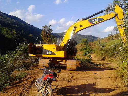 坐在车中通过与项目负责人交谈,得知:目前这条通至朴萨村的山路,全长共15.3公里,是由一台挖掘机、一辆拉运泥土的板车和一个运送汽油的及一个日送三餐饭的人,总共4个人的团队花费一个半月时间修好的。当时开挖机的师傅,几乎每天便住宿在这大山上。