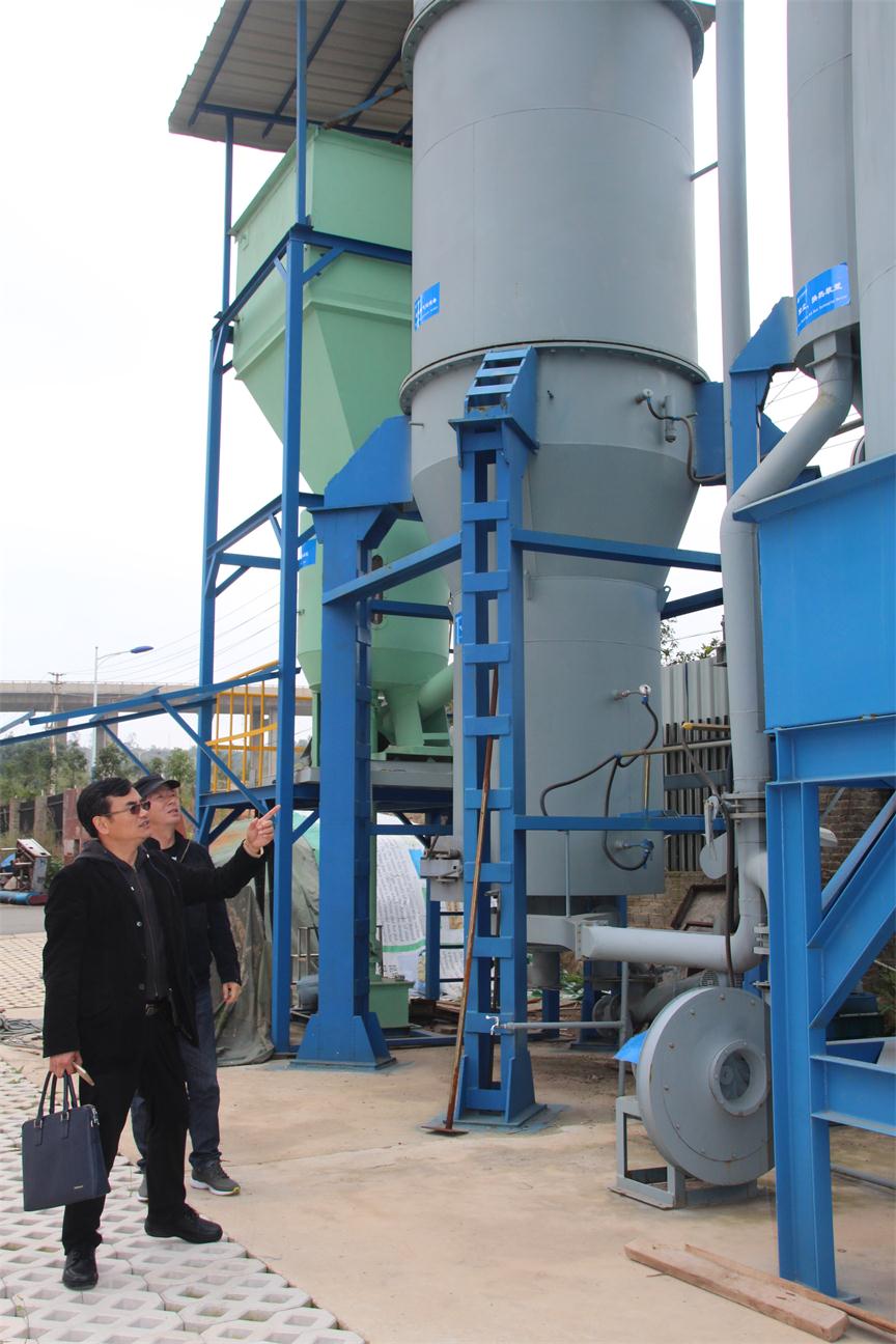 首先,电研公司副总经理带我们参观了公司大厅、厂房、设备,并详细介绍了生物质气化(电炭气热油)发电多联产技术、生物质成型燃料及成型生物质炭、生物质气化多联产集中供气技术、生物质气化烘烤及供热、家用型生物质颗粒燃烧节柴炉、餐饮用生物质灶具等技术与设备,我公司领导对新能源的各项技术和设备产生极大的兴趣。