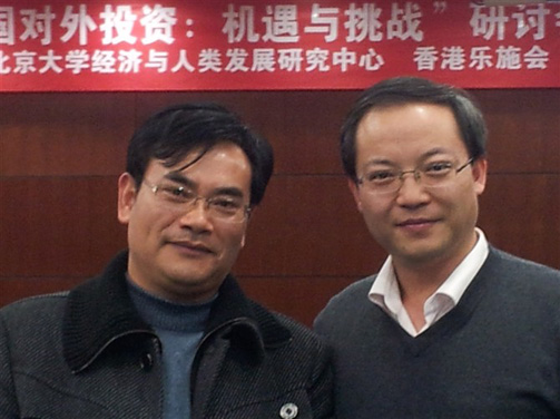 2012年1月11日, 由北京大学经济与人类发展研究中心主办乐施会协办的“可持续的中国对外投资:机遇与挑战”研讨会在北京举行,会议旨在搭建对外投资领域交流平台,让利益相关方互相交流共同探讨。来自国资委、社科院、北京大学、人民大学、中国农业大学、对外经济贸易大学、云南大学、云南农业大学、中国国家投资总公司、中国发展基金会、云南昌胜达投资有限公司等单位专家参加了此次研讨会,围绕着对外投资的战略、政策与法规,挑战与机遇等议题展开了讨论。